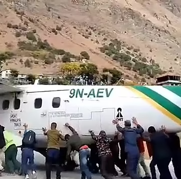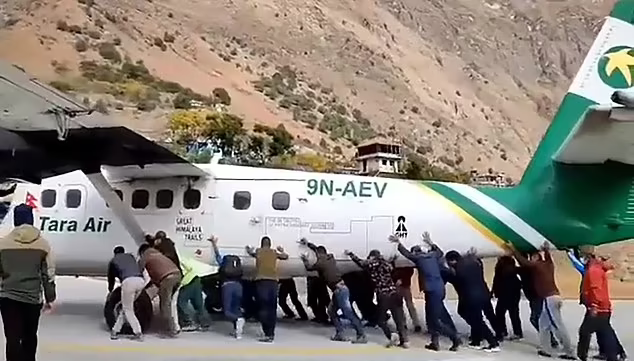 Passengers on the 19-seater plane were filmed guiding the Tara Air plane to safety after it became stuck on the runway at Bajura Airport in Kolti last week.